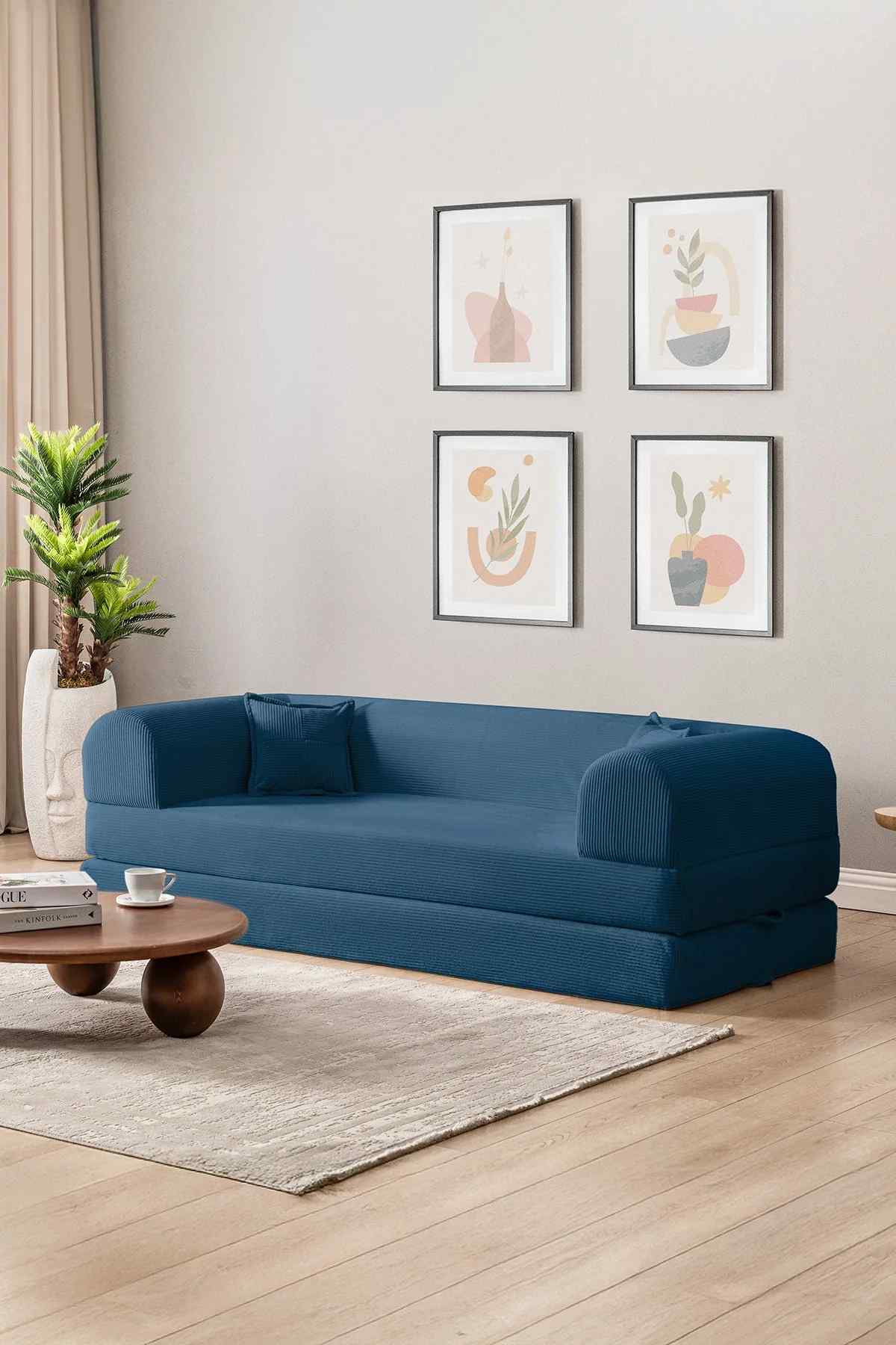 - Rollpack-Lieferung: Das Sofa wird platzsparend vakuumiert und gerollt geliefert, was den Transport in obere Stockwerke oder durch enge Türen kinderleicht macht.