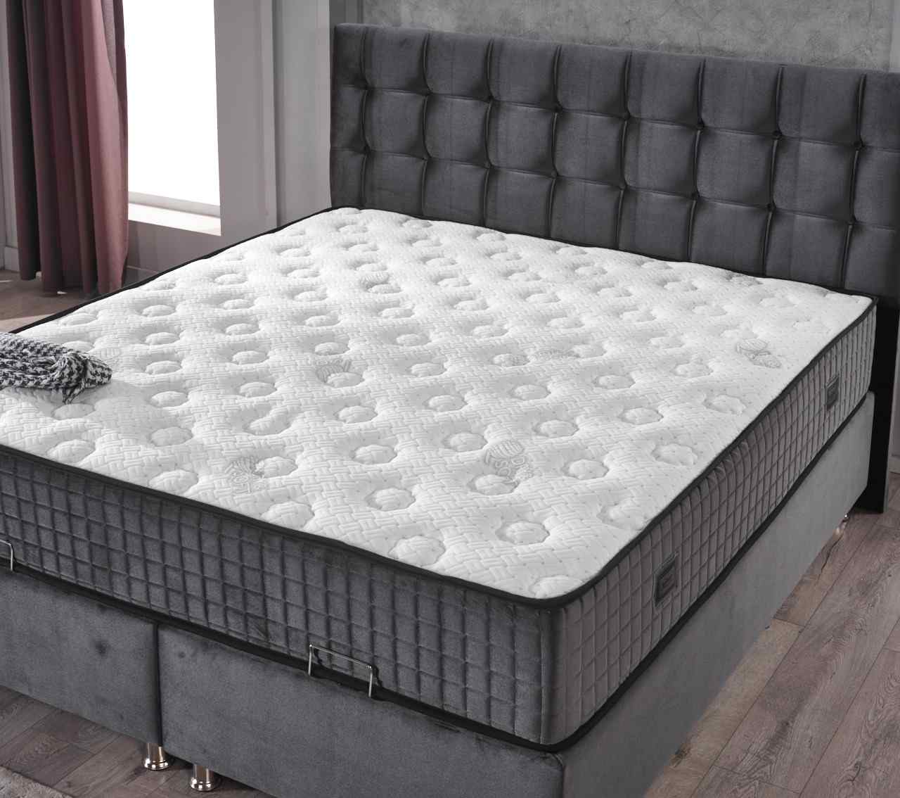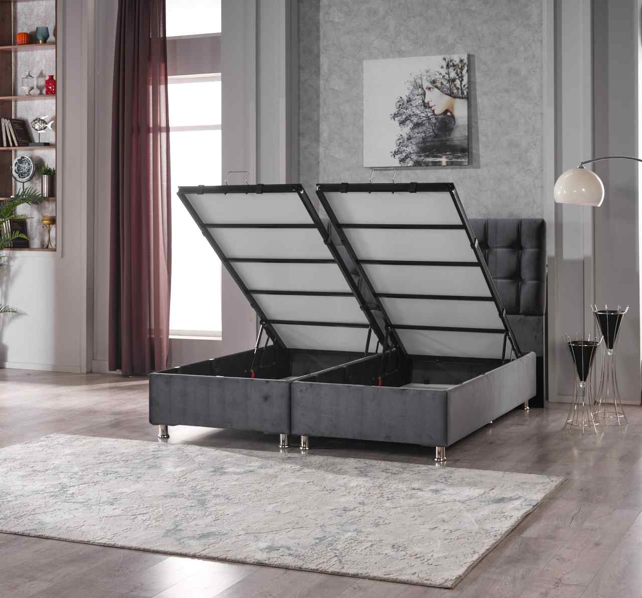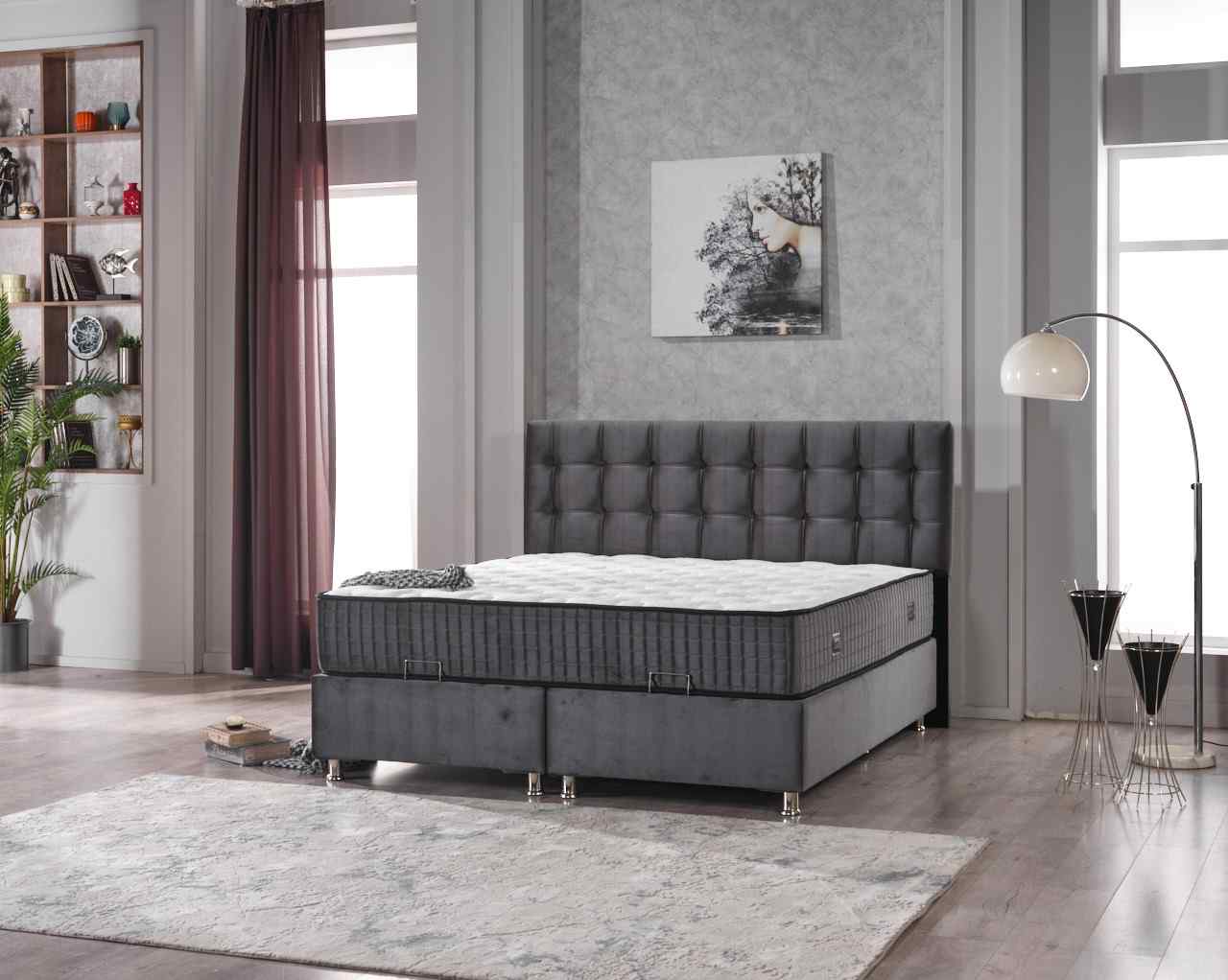 Set enthält: Boxspringbett mit Stauraum, Kopfteil und Matratze