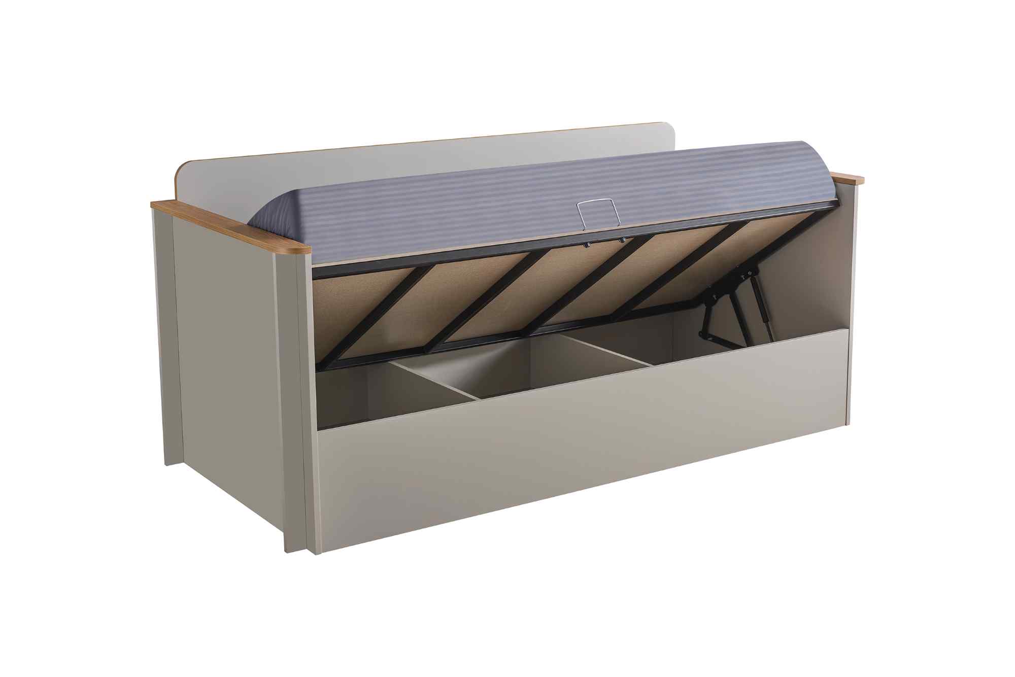 - Funktion: Bettkasten mit geteilten Fächern, leicht zu öffnen