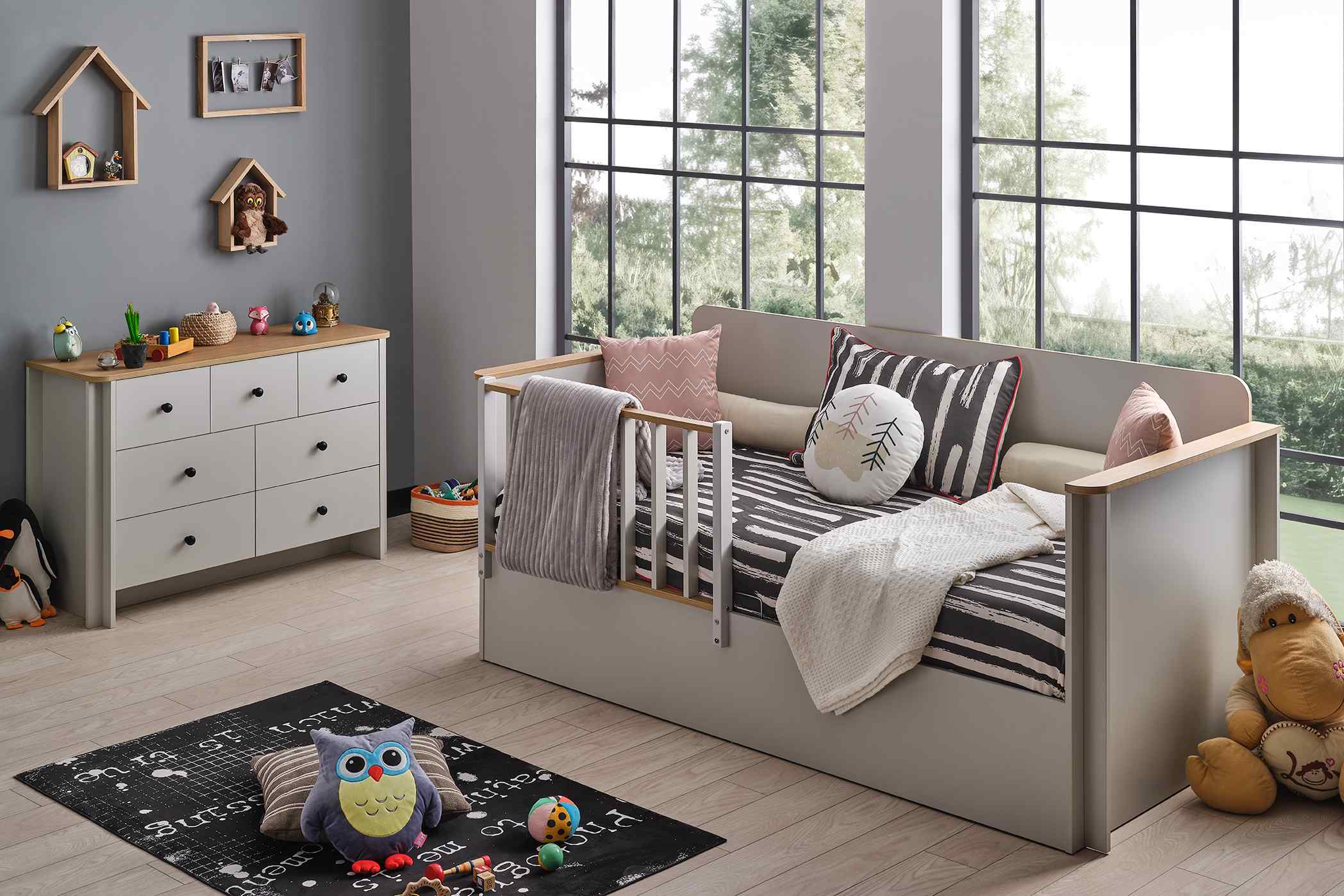 - 1x Sirius Toddler Bett mit Bettkasten (ohne Matratze/ohne Deko)