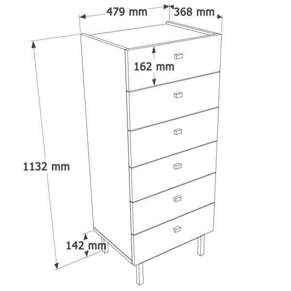 Die Kommode wird zerlegt geliefert. Alle Teile sind nummeriert, um die Montage zu erleichtern. Eine detaillierte Aufbauanleitung sowie sämtliche benötigten Beschläge und Verbindungselemente sind im Lieferumfang enthalten. Dank des Minifix-Systems ist ein wiederholter Auf- und Abbau problemlos möglich.