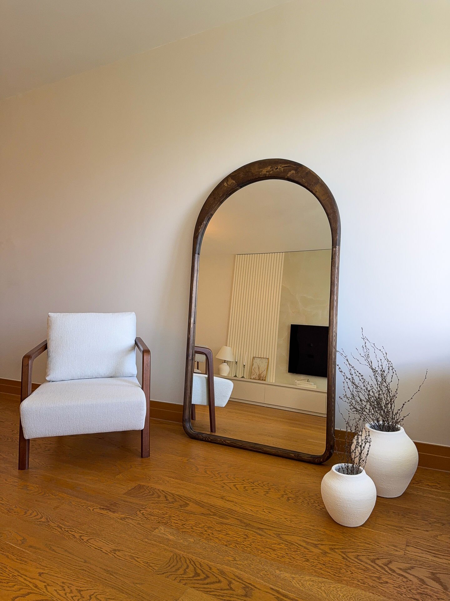 Der freistehende große Standspiegel ist nicht nur funktional, sondern auch ein ausdrucksstarkes Wohnaccessoire.