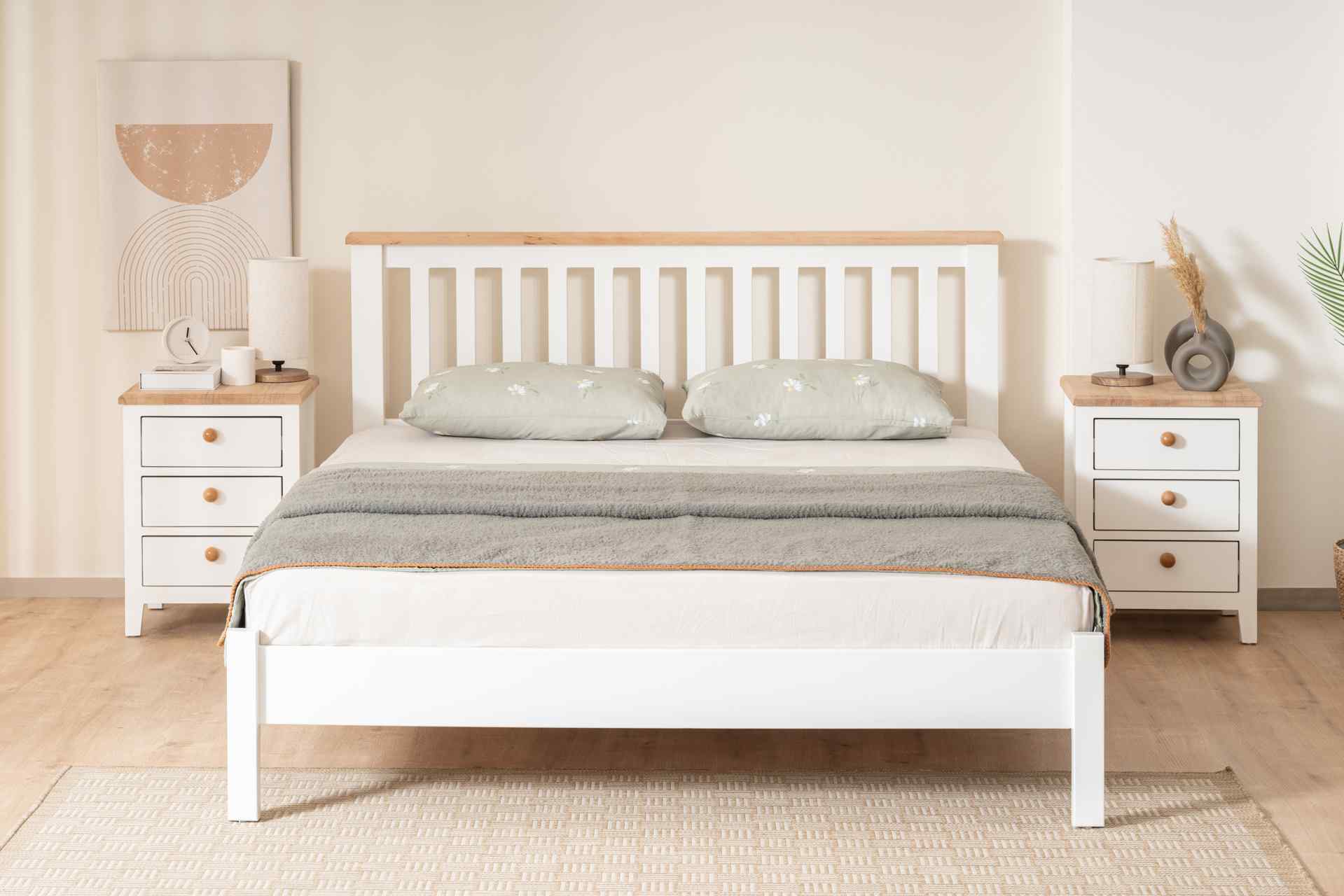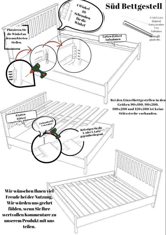 Das Bettgestell wird zerlegt geliefert und kann dank der mitgelieferten Montageanleitung einfach zusammengebaut werden.