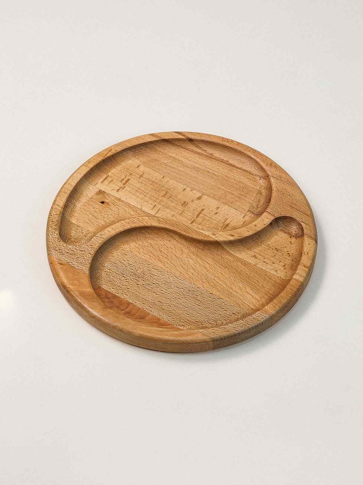 Trevo Massivholz Servierteller mit Zwei Fächern – 22 × 22 cm