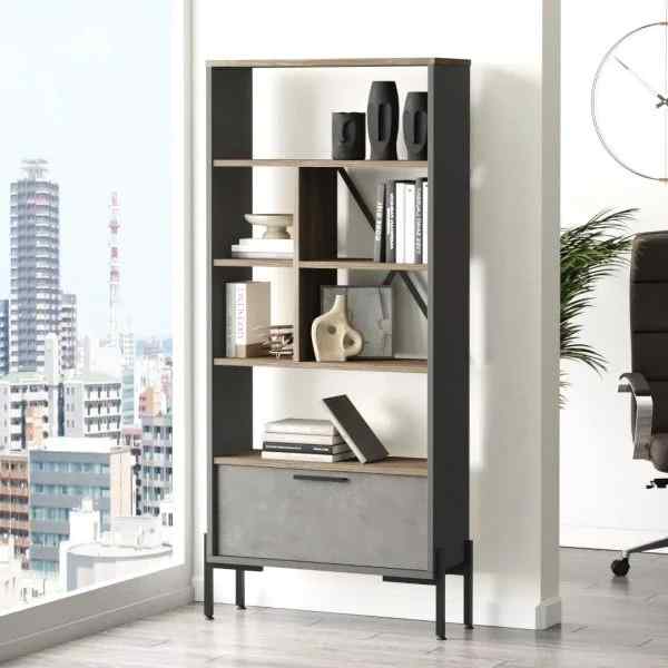 Das Vista Büro-Bücherregal überzeugt durch sein modernes und funktionales Design. Es verleiht Ihrem Büro oder Arbeitsbereich Wärme und Ästhetik und bietet gleichzeitig eine praktische Lösung zur Aufbewahrung von Büchern, Ordnern und Dekorationsartikeln.